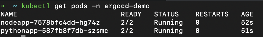 kubectl get pods -n argocd-demoYour applications should now be running with Dapr sidecars injected.