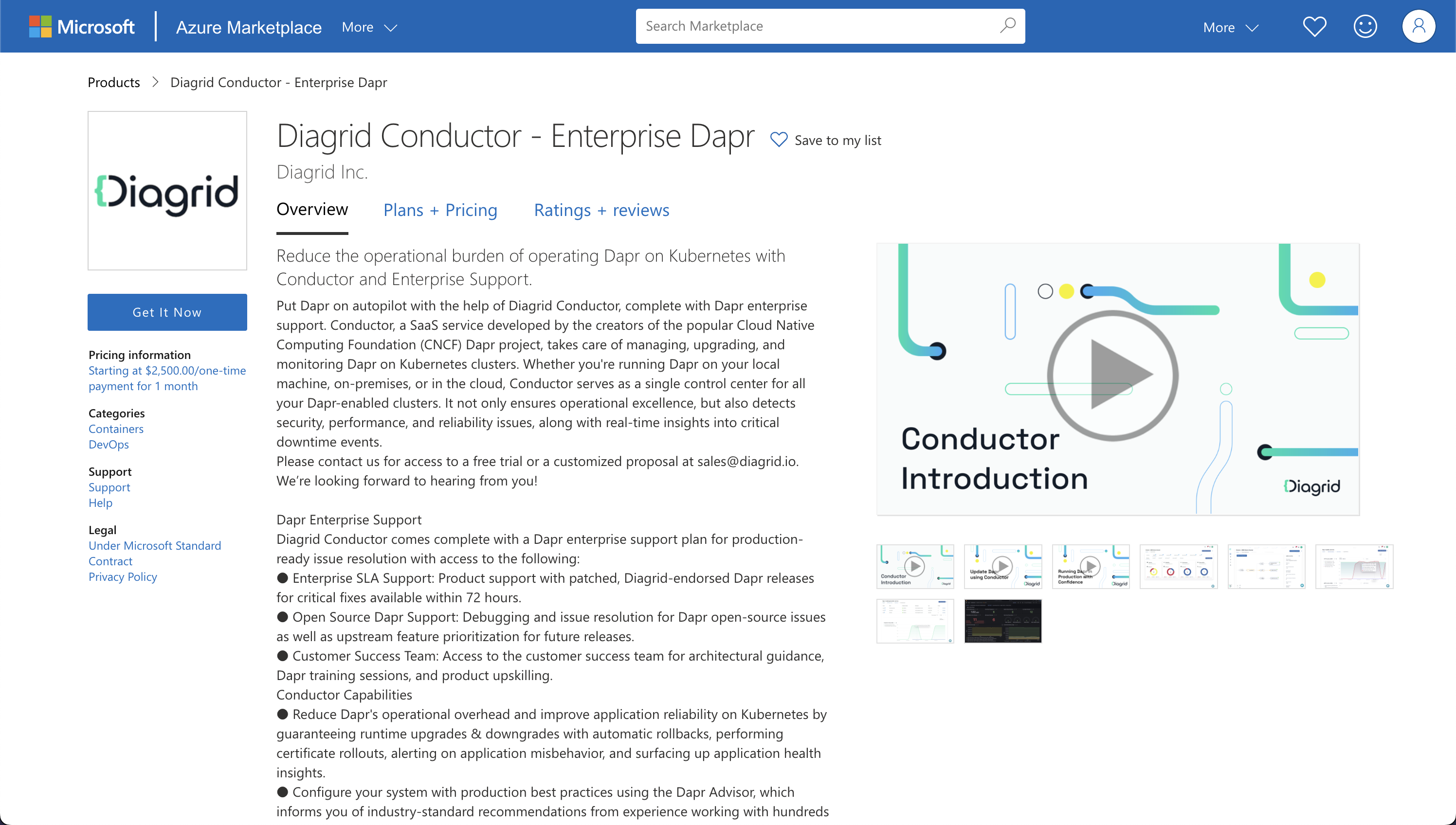Diagrid Conductor is currently available on the Azure marketplace with a select number of plans. For personalized plans please contact us at sales@diagrid.io for a custom quote for your Kubernetes environment. Please contact us at sales@diagrid.io for a custom quote for your Kubernetes environment.