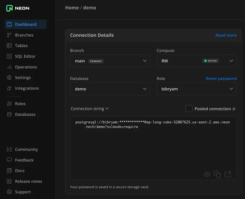 Set up a Neon database as follows: