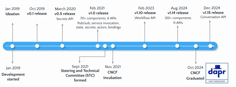 From its initial release in 2019 to the latest version, Dapr has evolved into a mature and comprehensive distributed application runtime used in production by tens of thousands of companies. As its co-creators, watching Dapr's journey has been an incredible honor, with so many in the community and ecosystem taking our initial vision to heights we could never have imagined back in 2018 . As Dapr continues to push the boundaries of application runtime, we’re committed to ensuring it remains at the forefront of evolving with the cloud native ecosystem with workflows, conversational API for LLMs and so much more.