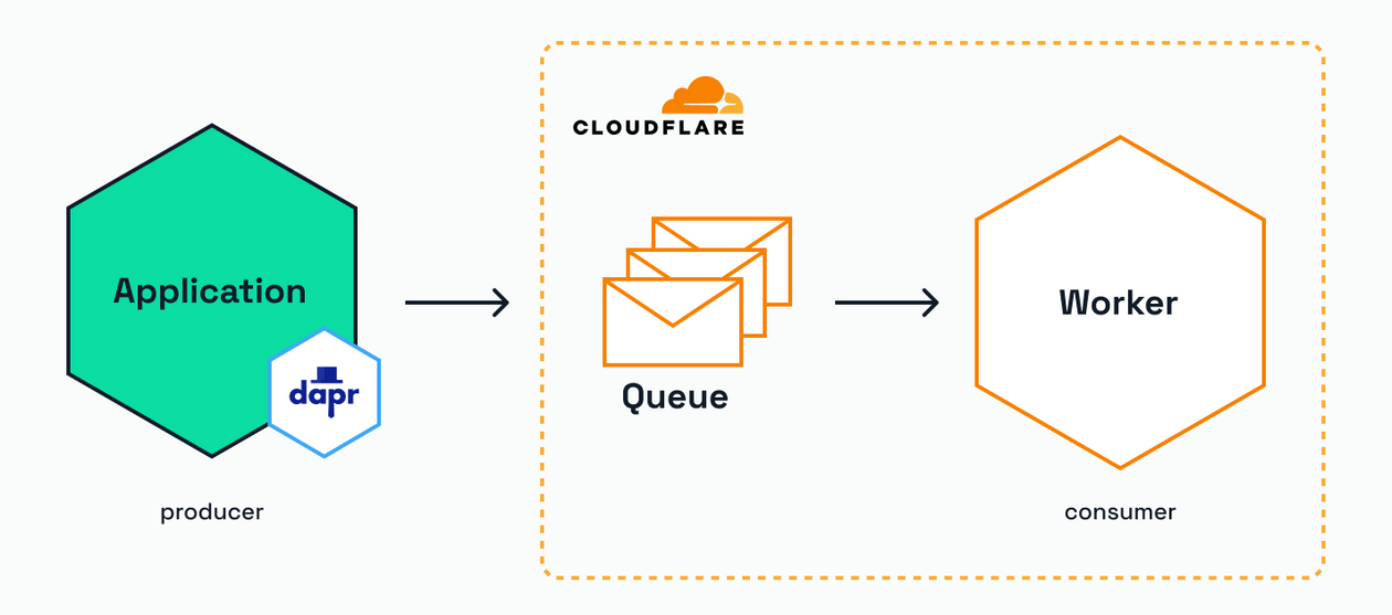 - A producer Dapr app (in TypeScript) that uses the Cloudflare Queue binding to publish messages to the queue.