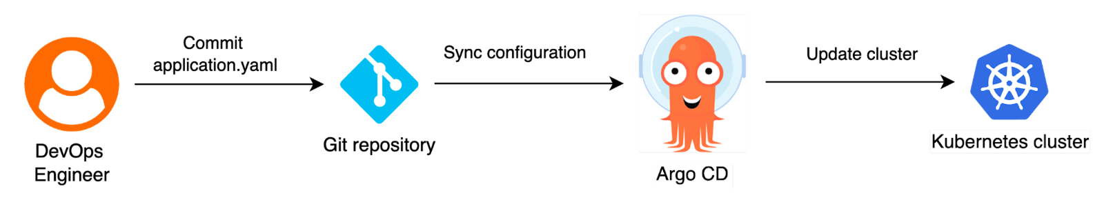 - Destination: Where your application should be deployed, for example, a Kubernetes cluster and namespace.