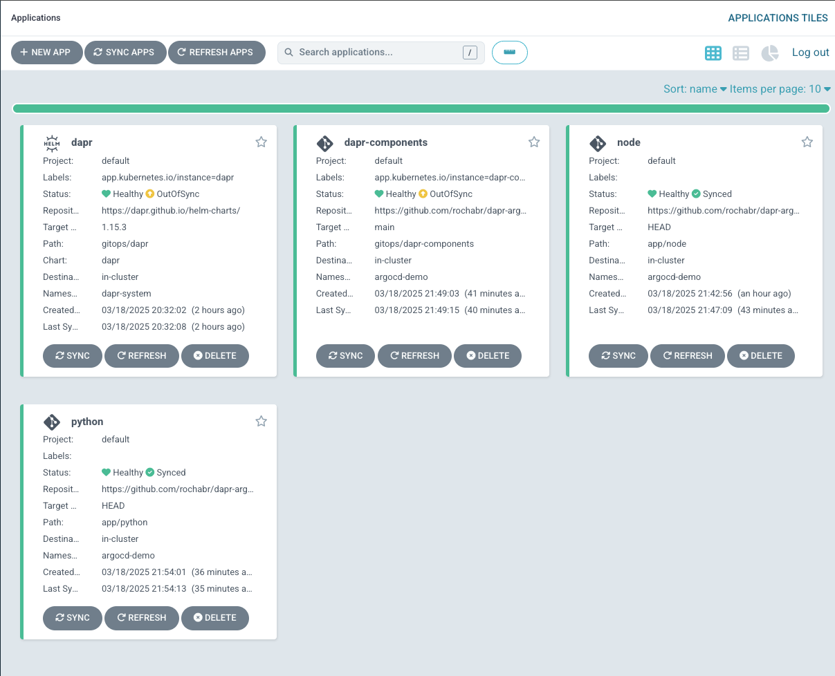 argocd app sync dapr-componentsStep 6: Deploy Sample Applications