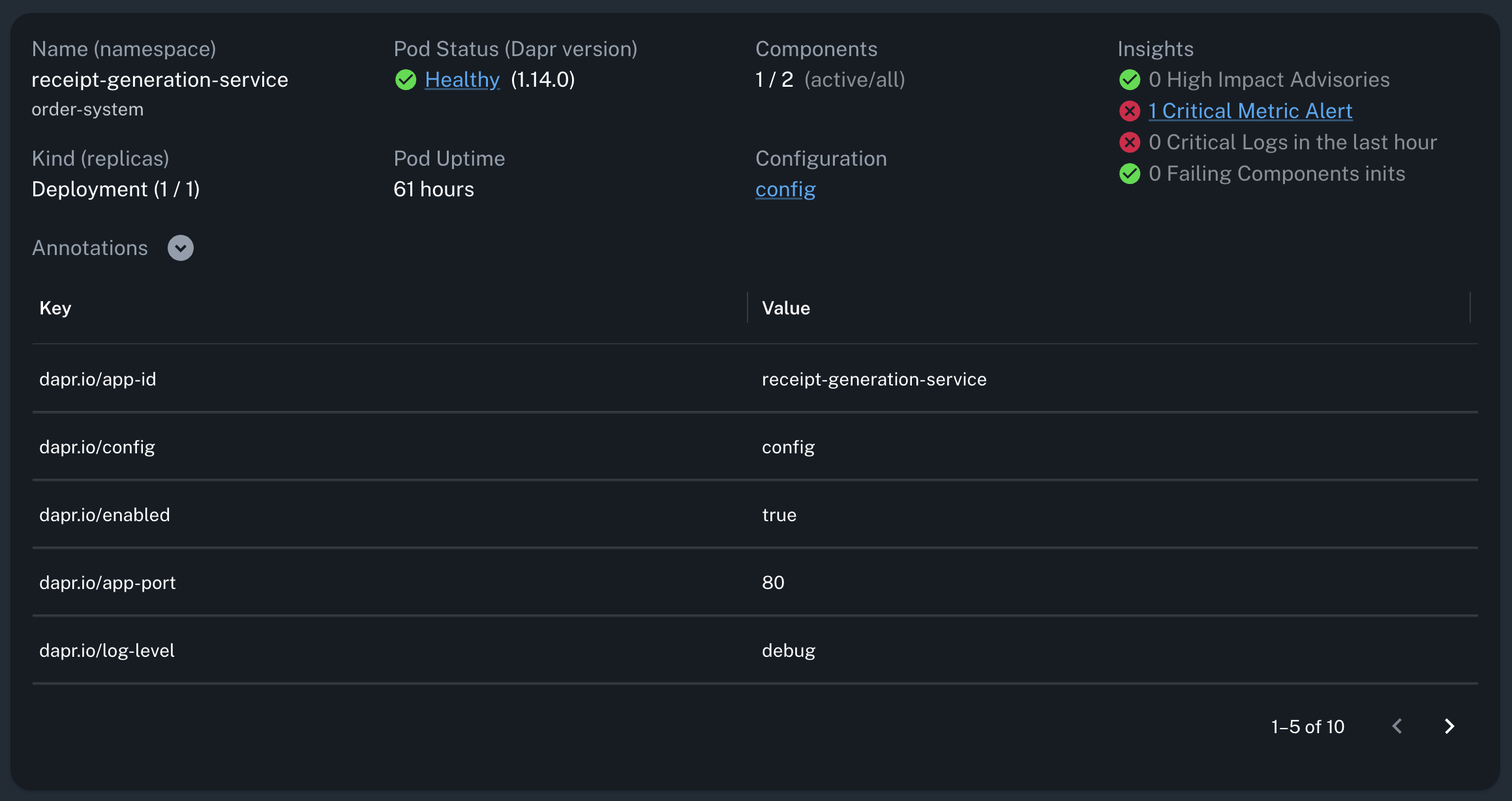 Diagrid Conductor offers a comprehensive overview of every Daprized application, enabling you to easily inspect all Dapr configurations and annotations.