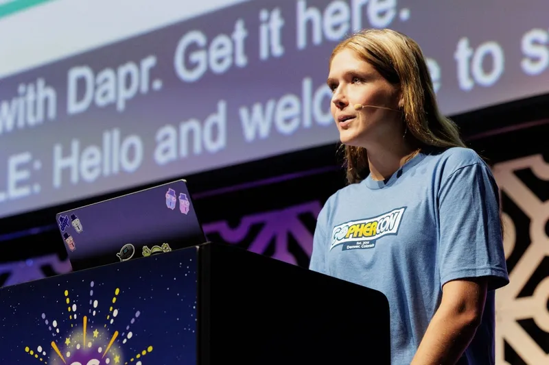 Cassie, a Dapr contributor, presented to the entire conference audience on the topic of Standardizing Errors in Go: A Practical Guide With Dapr, igniting discussions about Dapr and Diagrid's contributions to the ecosystem as well as sparking collaboration on a new Dapr debugging capability.