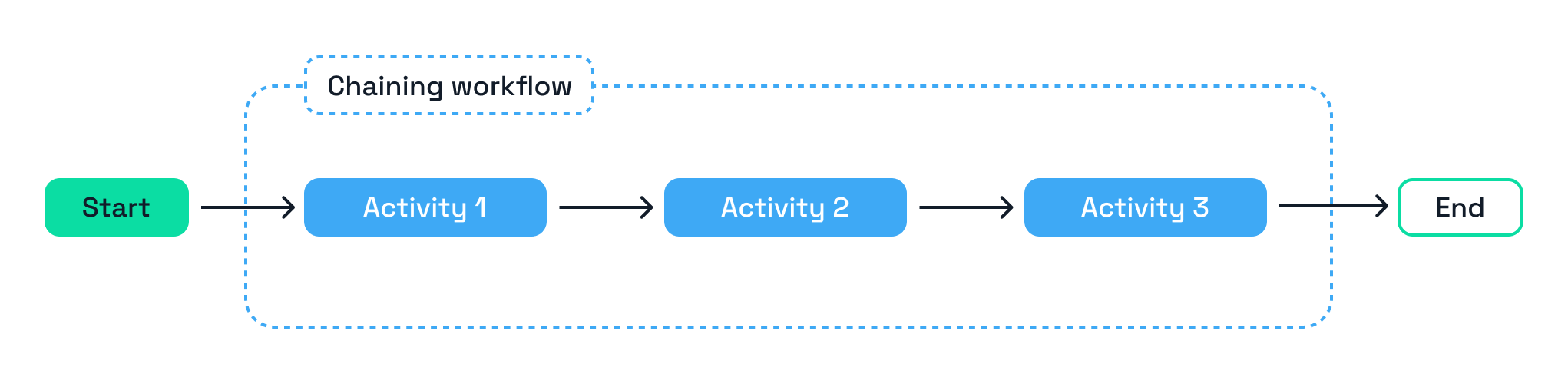 The purpose of the chaining pattern is to enforce a specific order of activity executions. The output of an activity is usually required as an input for the next activity. Or there is a strict sequence of interactions with external systems that are called from the activities.