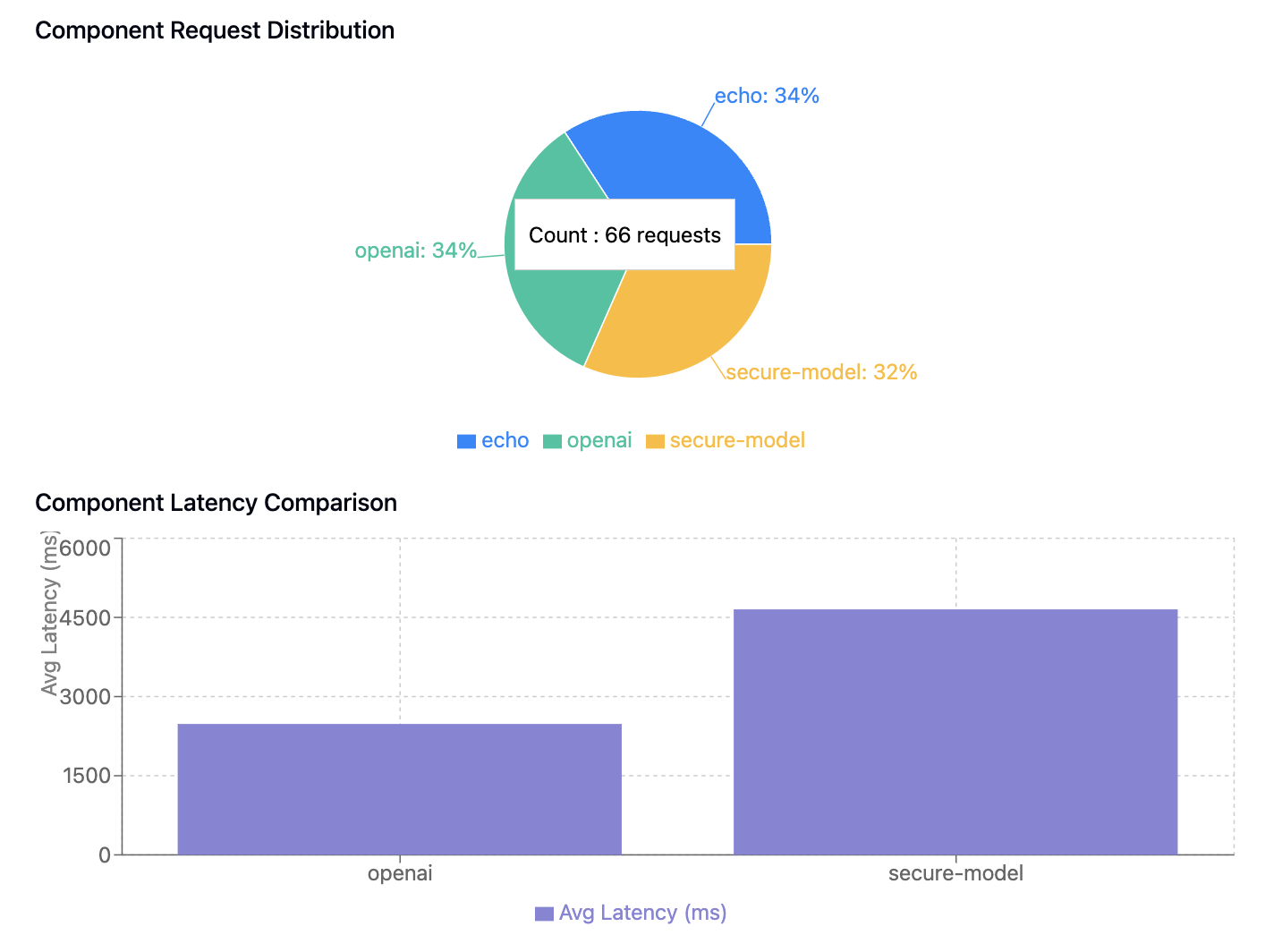 Beyond traces, Dapr automatically emits Prometheus metrics for LLM interactions, including request counts, latencies, and success/failure rates, that feed directly into Prometheus or other metrics systems for alerting and dashboards. Here is how these metrics could be rendered: