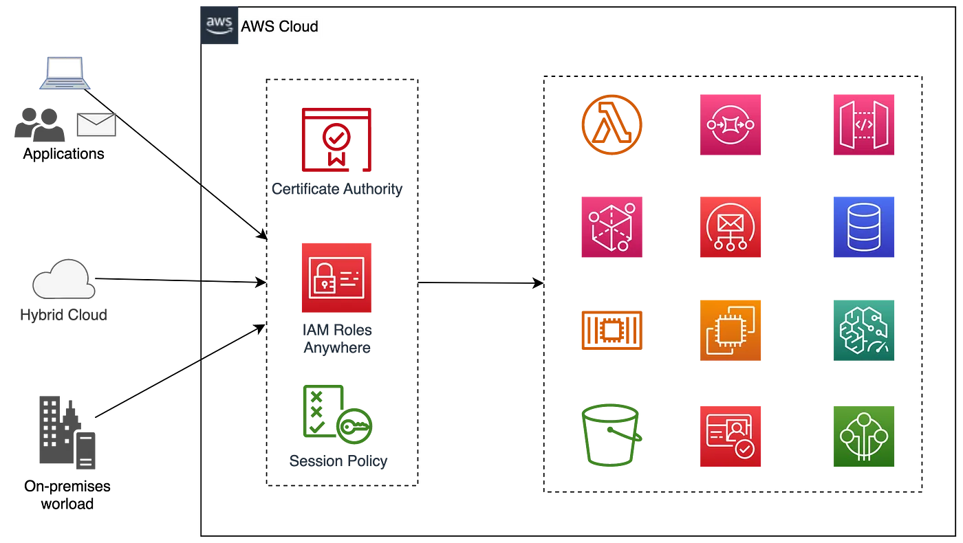 Image credits to: https://medium.com/@rajdeep.617/aws-iam-roles-anywhere-bye-bye-iam-secrets-202a8b33ca55