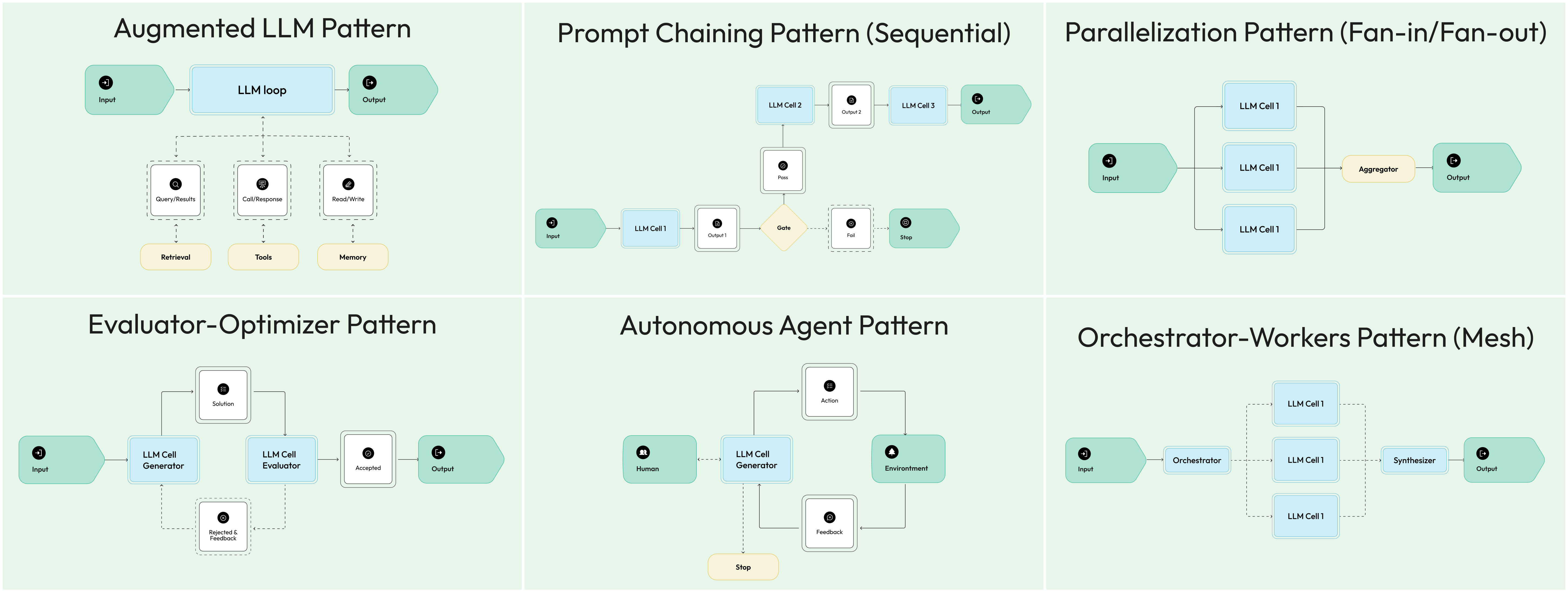 This illustrates three essential patterns that call LLMs: