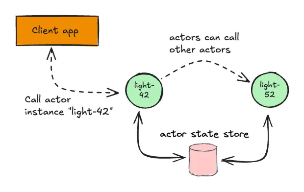 Actors communicate through Dapr’s service invocation API, and the actor SDKs make calling another actor as simple as calling a local method. While this makes code look clean, it’s important not to mistake that ease for a guarantee of efficiency. If your system develops long chains of actor-to-actor calls—for example, Actor A calling Actor B, which then calls Actor C—you can easily end up with tightly coupled flows.
