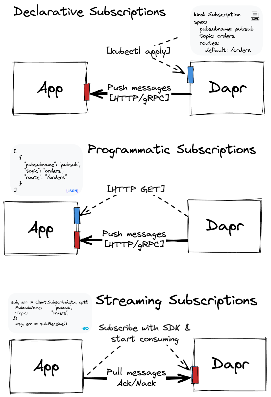 Summary of all three Dapr subscription types.